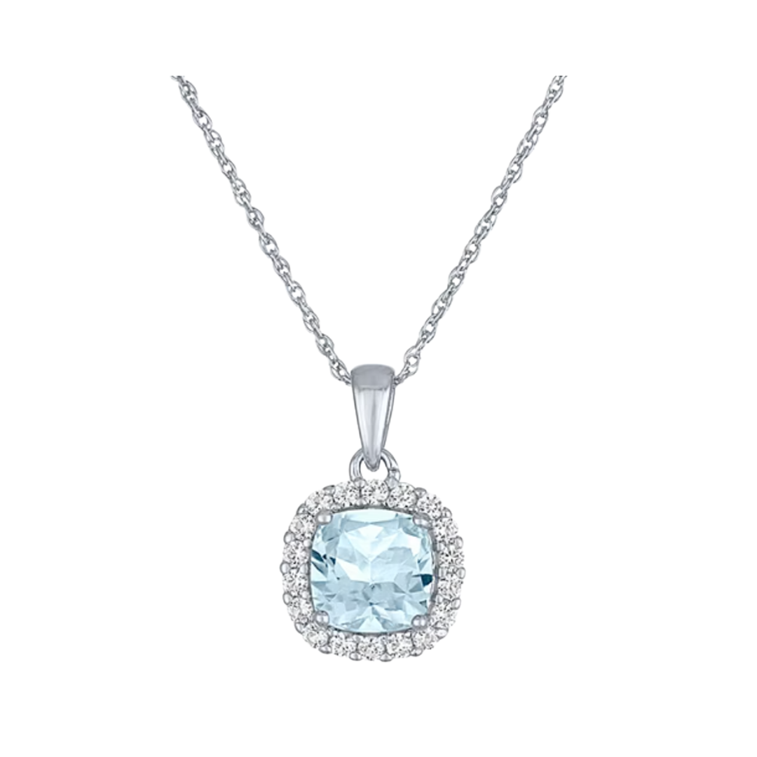 Collar Cushion con Halo de Zafiro Blanco de LaboratorEn plata