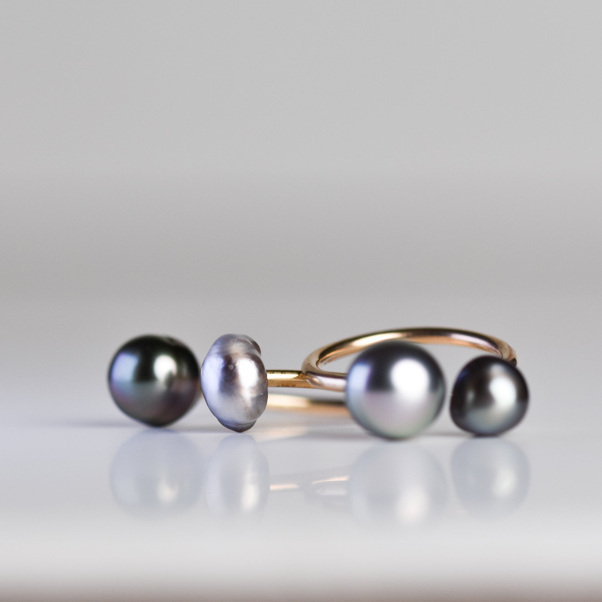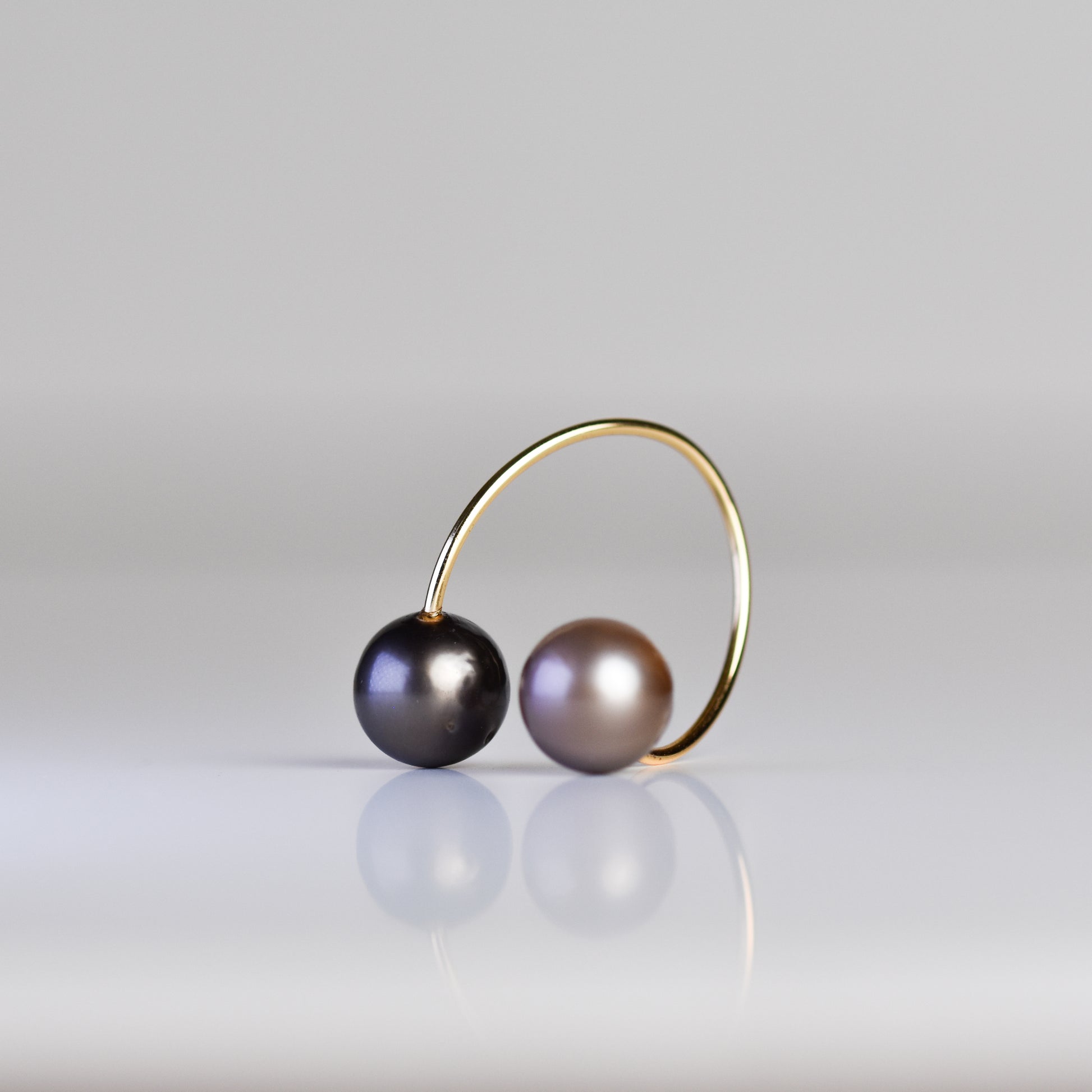 Anillo abierto con perlas de Tahití y Keshi en oro amarillo 14K