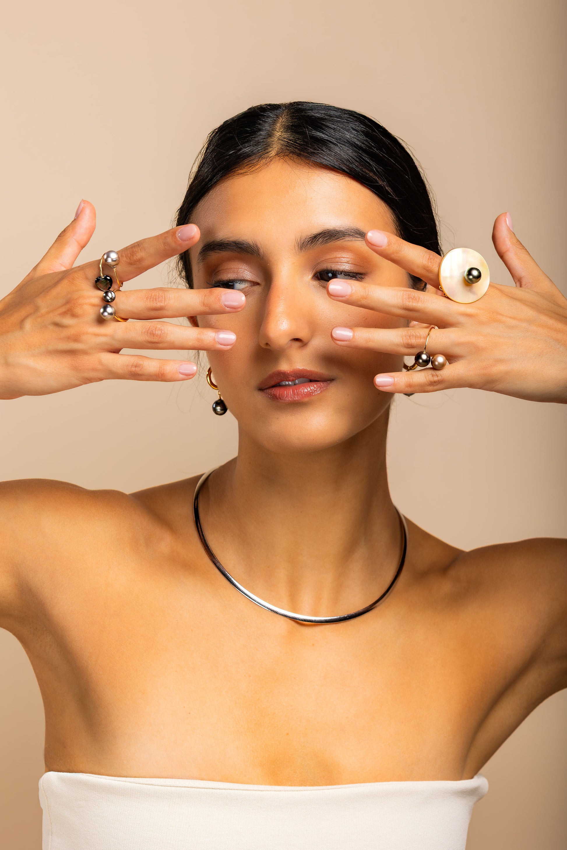 Un diseño contemporáneo con esencia natural. Este anillo abierto combina la rareza de la perla Keshi y la sofisticación de la perla de Tahití, montadas sobre un fino aro de oro amarillo 14K. Una pieza artística y moderna, perfecta para quienes buscan elegancia con personalidad.