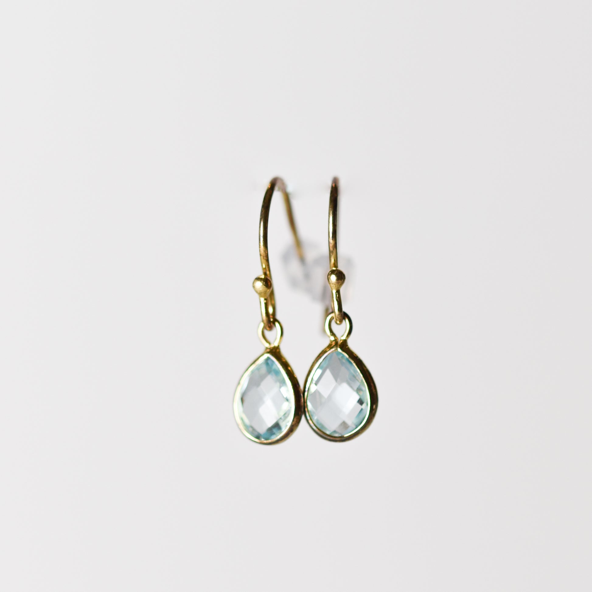Con un diseño tipo gota, estos aretes colgantes combinan topacio azul natural con un cálido baño de oro de 14k. Elegantes y modernos, perfectos para eventos o cenas especiales.