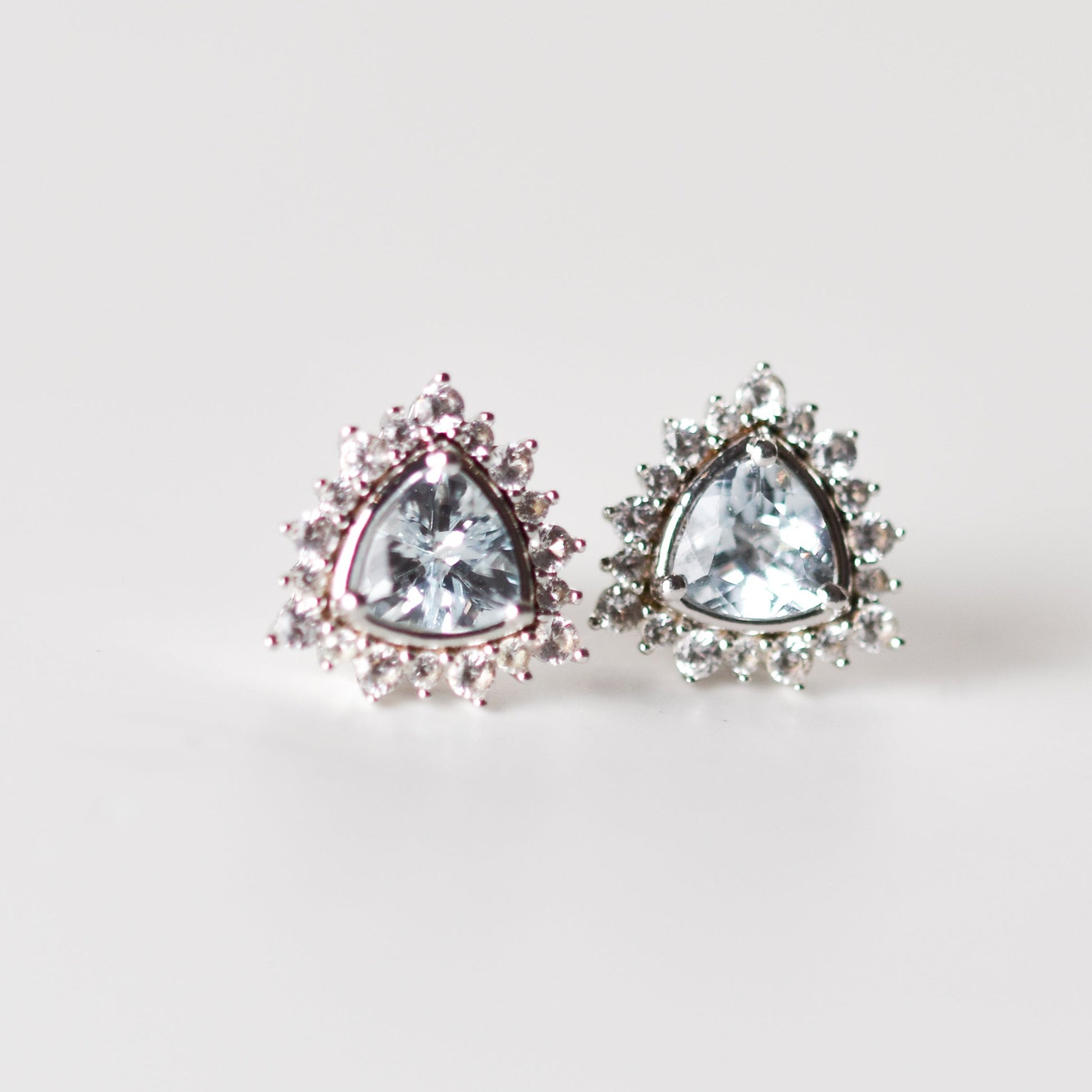 Inspirados en el mar, estos aretes combinan la belleza de la aguamarina natural con el brillo del halo de zafiros blancos. Una joya delicada y elegante, perfecta para regalar o consentirte.