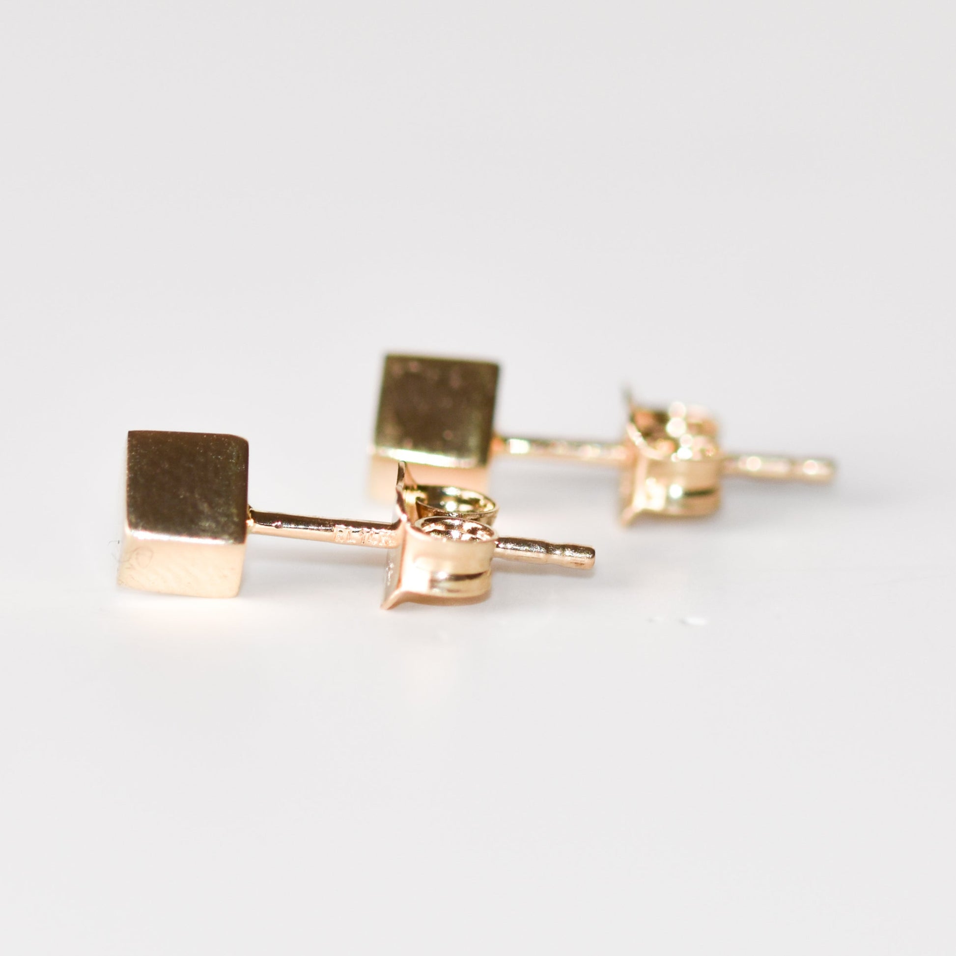 Minimalismo puro en su máxima expresión. Estos aretes tipo stud en forma de cubo están elaborados en oro amarillo de 14 quilates, ofreciendo un diseño limpio, geométrico y atemporal que se adapta a cualquier estilo.