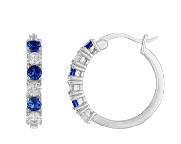 Arracadas delicadas con un toque vibrante: esta pieza combina zafiros azules y blancos creados en laboratorio, montados sobre plata esterlina. Un básico moderno con un guiño de color.