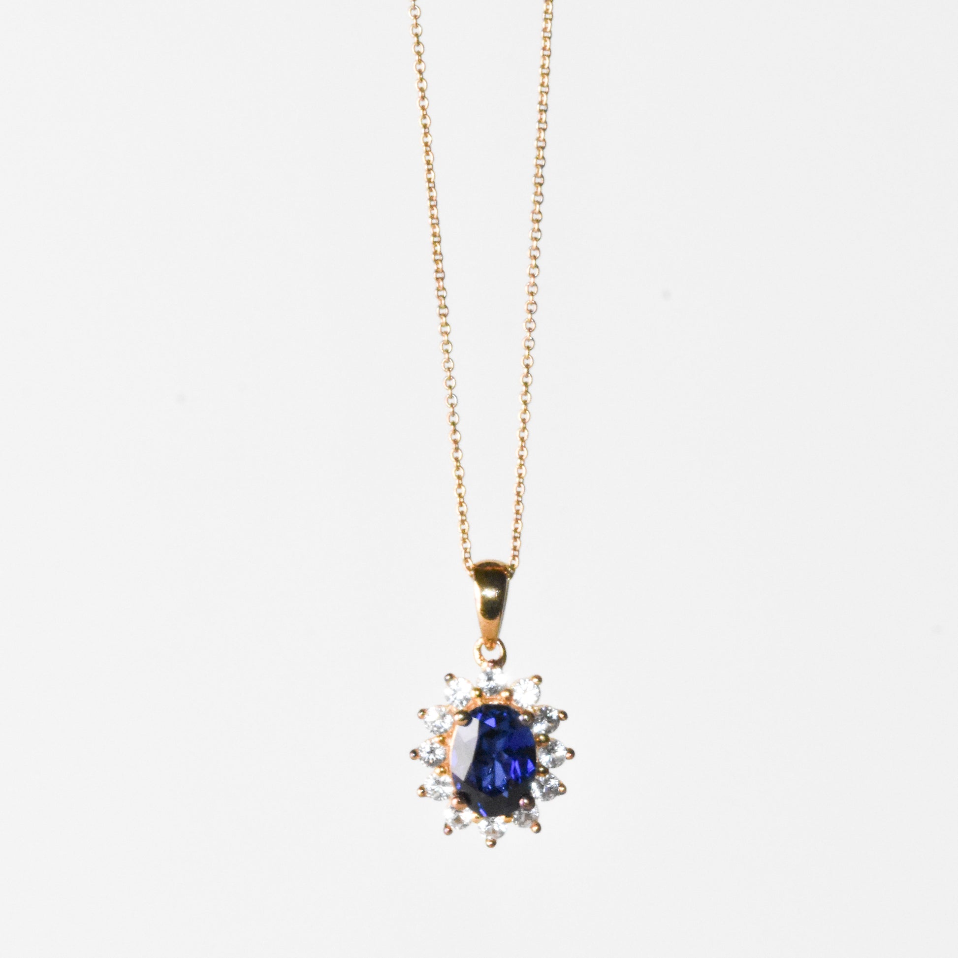 Collar con zafiro azul 1.33 ct y zafiros blancos en baño de oro sobre plata esterlina