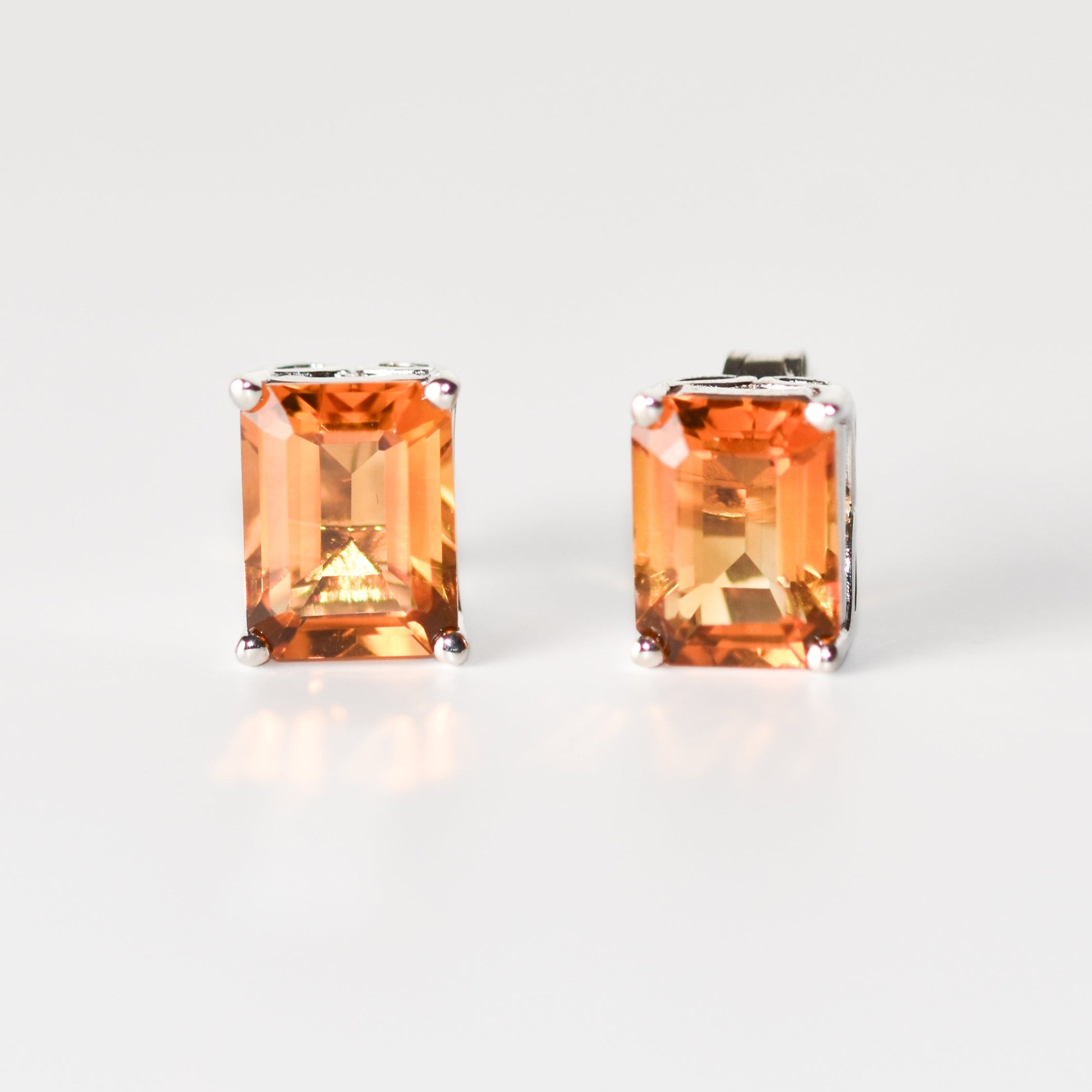 Aretes tipo stud con citrino en corte esmeralda en plata esterlina