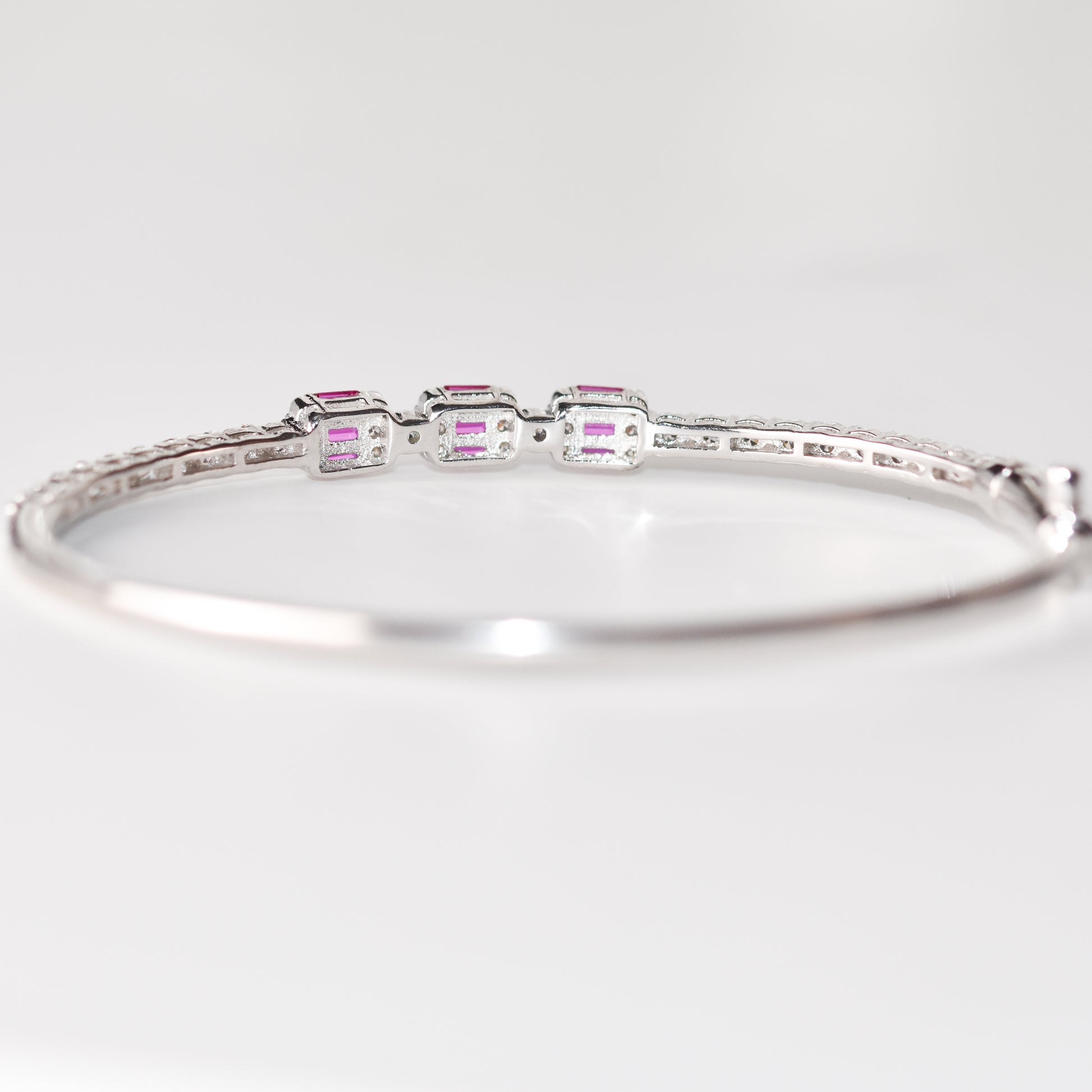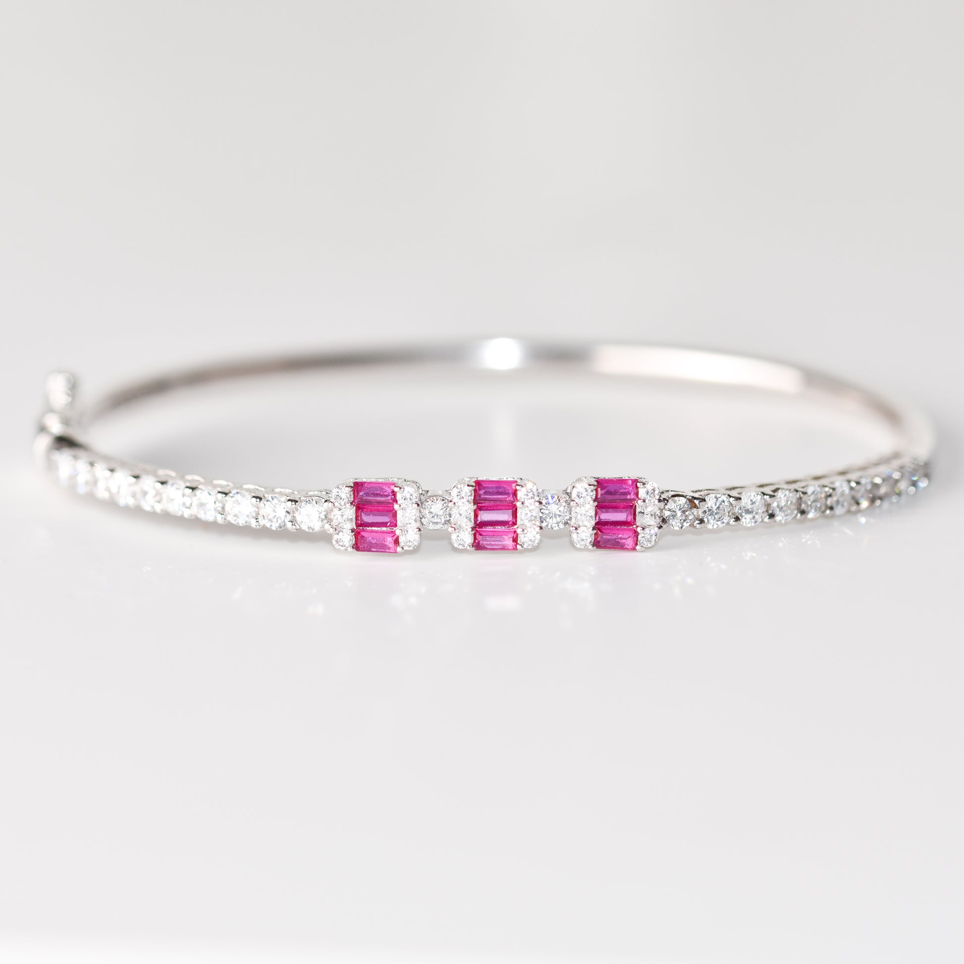 Pulsera con rubíes y zafiros blancos creados en laboratorio en plata esterlina