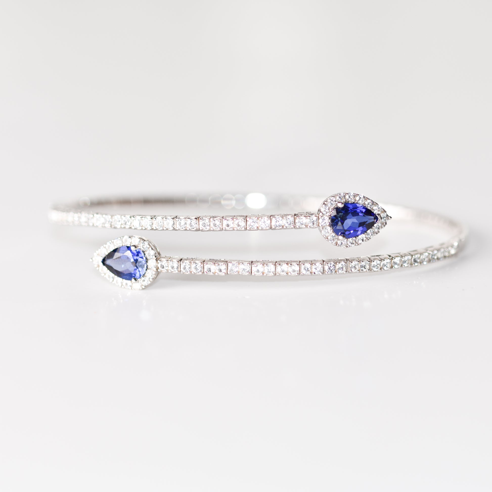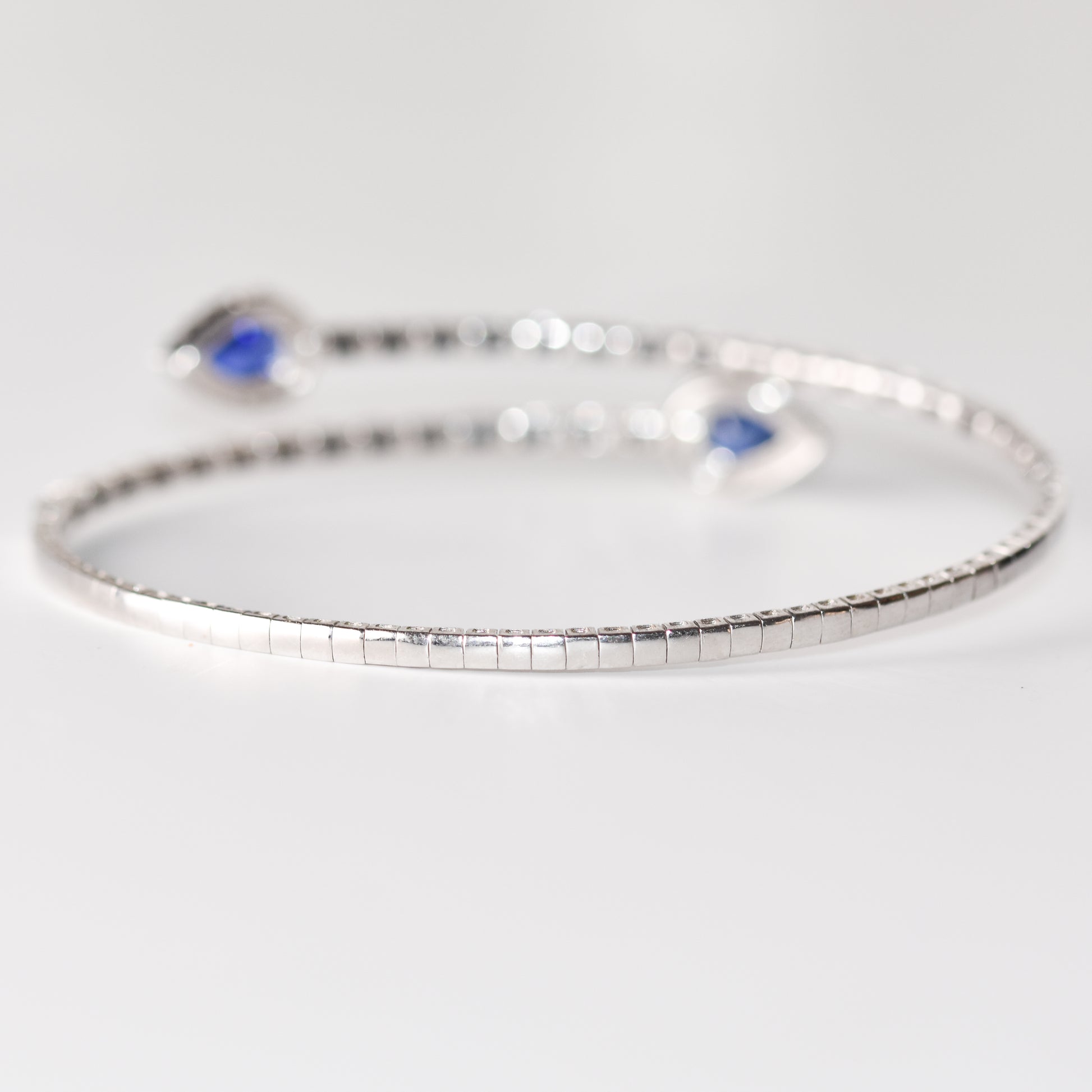Pulsera flexible abierta con zafiros azules y blancos creados en laboratorio en plata esterlina